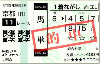 | △ | … | 注 | … | × | 80 | 8 | 15 | キングスエンブレム | 牡6 | 56 | 福永祐一 | 差し | 昨年2着 |
