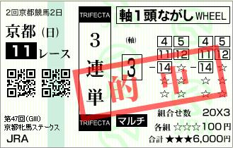 | 注 | ◎ | △ | 注 | ▲ | 82 | 6 | 11 | アスカトップレディ | 牝5 | 54 | 酒井 学 | 先行 | 京芝2221 |